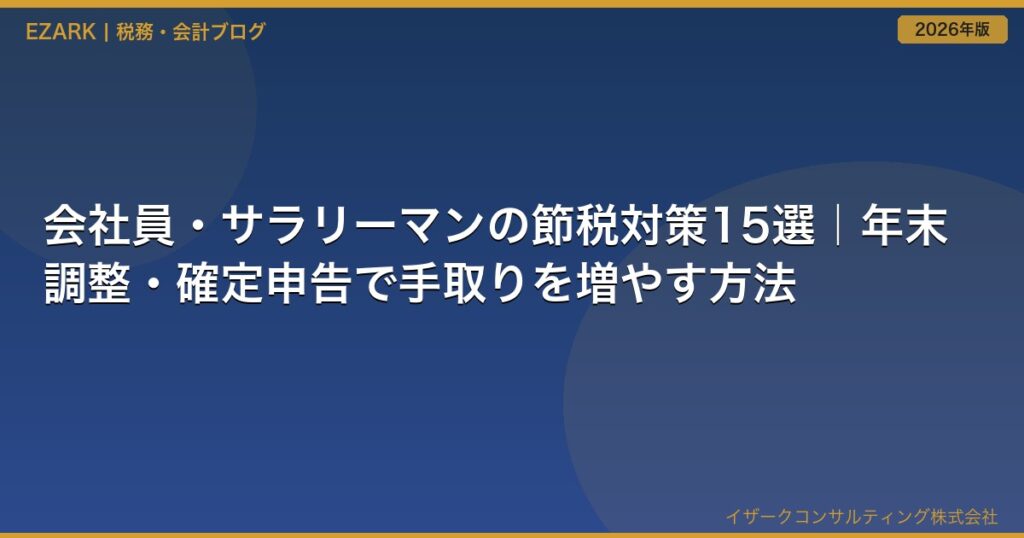 「会社員は節税できない」と思っていませんか?実は、会社員でも年間数万円〜数十万円の節税が可能です。 この記事では、2026年の最新制度に基づき、会社員・サラリーマ... -
