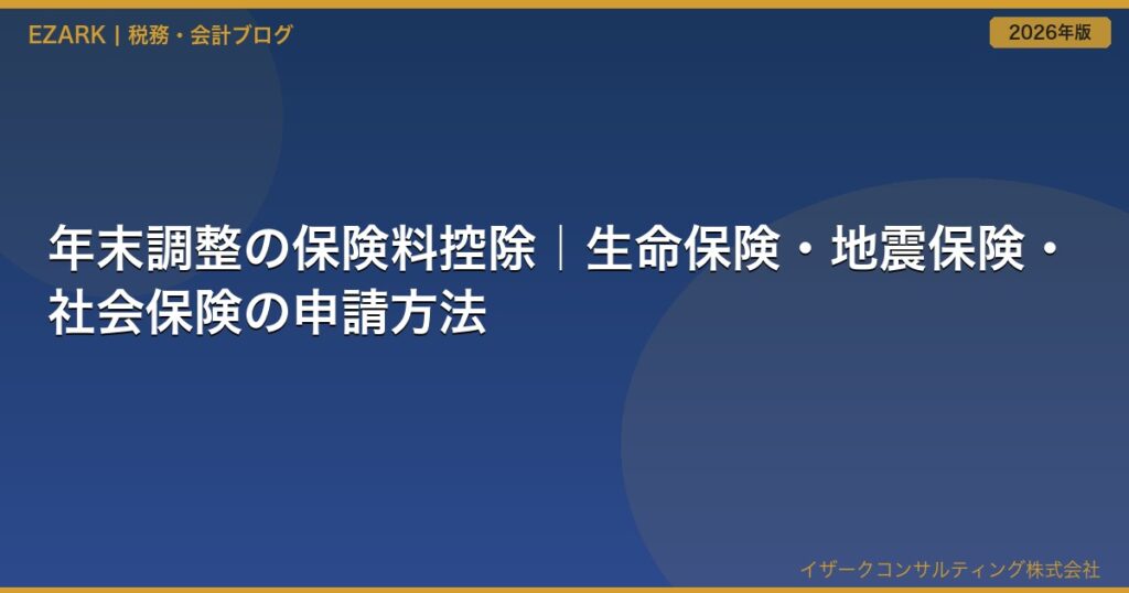 年末調整で申請できる保険料控除を徹底解説。生命保険料控除・地震保険料控除・社会保険料控除の計算方法、控除証明書の見方、申告書の書き方まで実務家が完全ガイド。 -